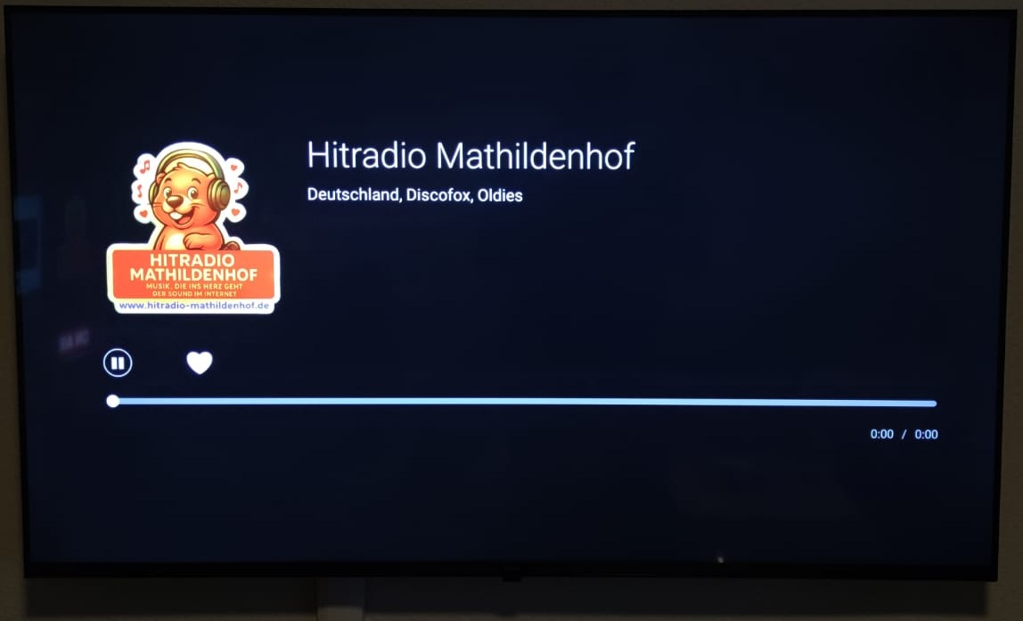 Danach wird dir in der Anzeige "laut.fm - hitradio-mathildenhof" angezeigt. Jetzt kannst du den Stream direkt über deinen Fernseher starten und hören und mich zu den Favoriten hinzufügen.